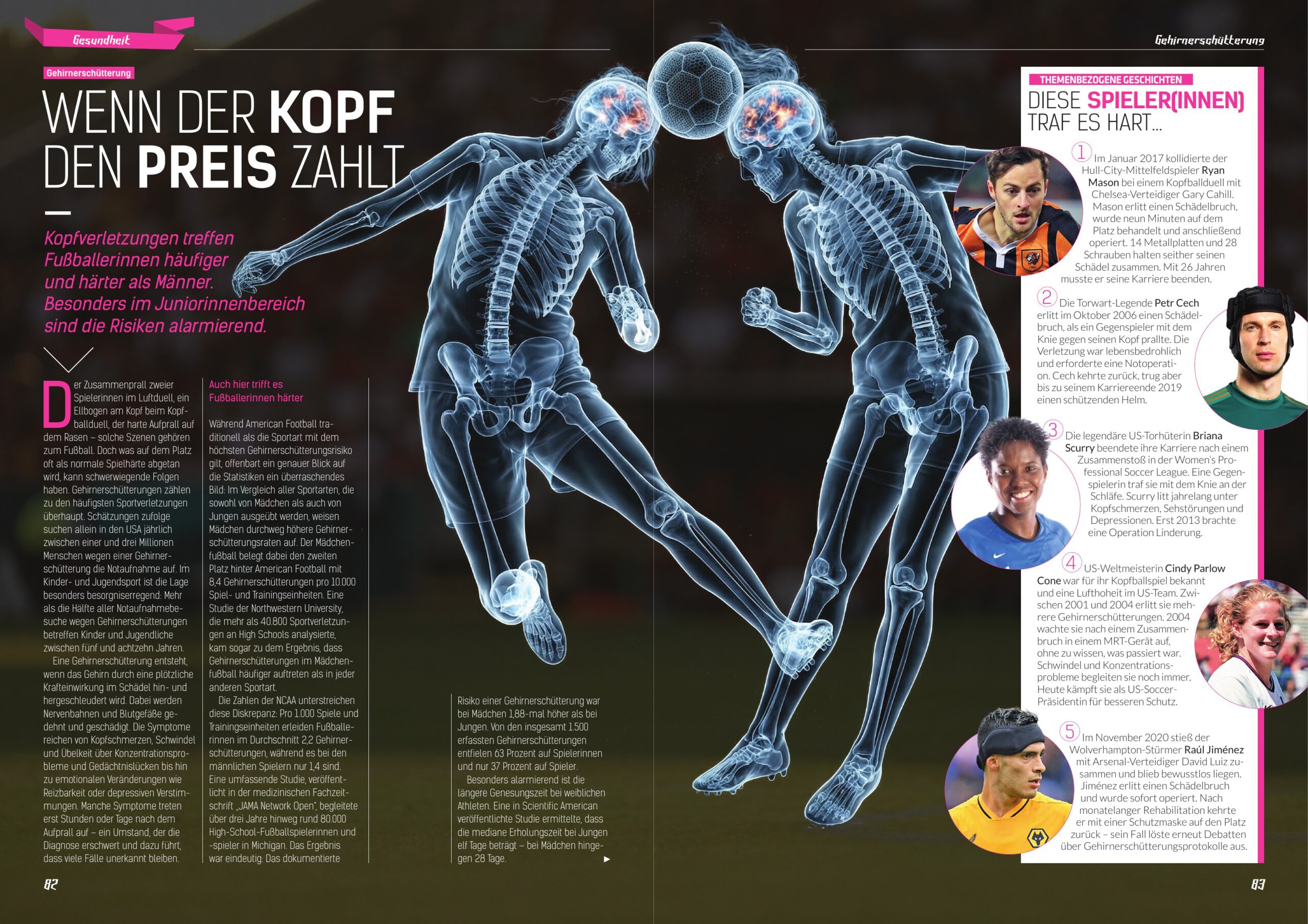 Ein Thema bewegt uns besonders: Gehirnerschütterungen im Frauenfußball. Die Zahlen sind alarmierend, die Schutzmaßnahmen unzureichend. Wir haben hingeschaut – weil Wegschauen keine Option sein darf. Was all diese Geschichten verbindet? Der Frauenfußball wartet nicht mehr. Er handelt. Laut, selbstbewusst und auf immer größeren Bühnen.