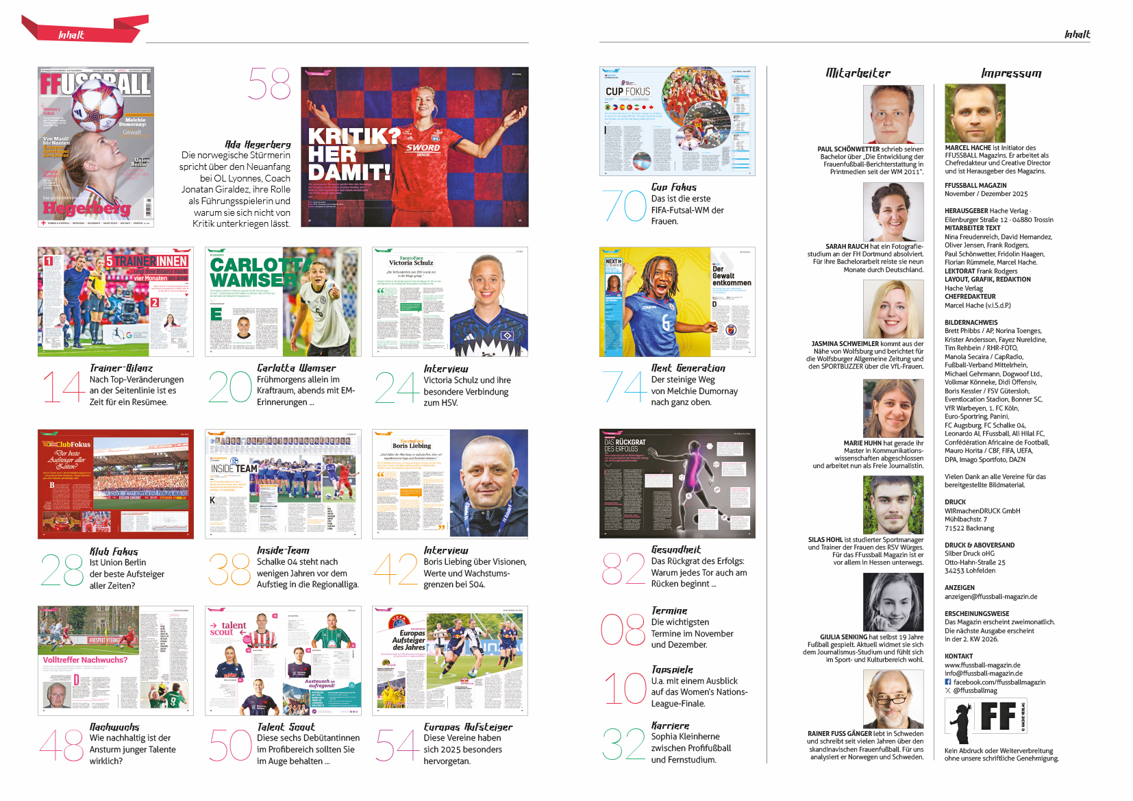 das Kalenderjahr 2025 neigt sich dem Ende zu – ein Jahr, das uns erneut vor Augen geführt hat, wie dynamisch und vielschichtig der Frauenfußball geworden ist. Zwischen etablierten Größen und aufstrebenden Talenten, zwischen Kontinuität und Wandel haben sich spannende Geschichten entwickelt, die wir in dieser Ausgabe für Sie zusammengetragen haben.